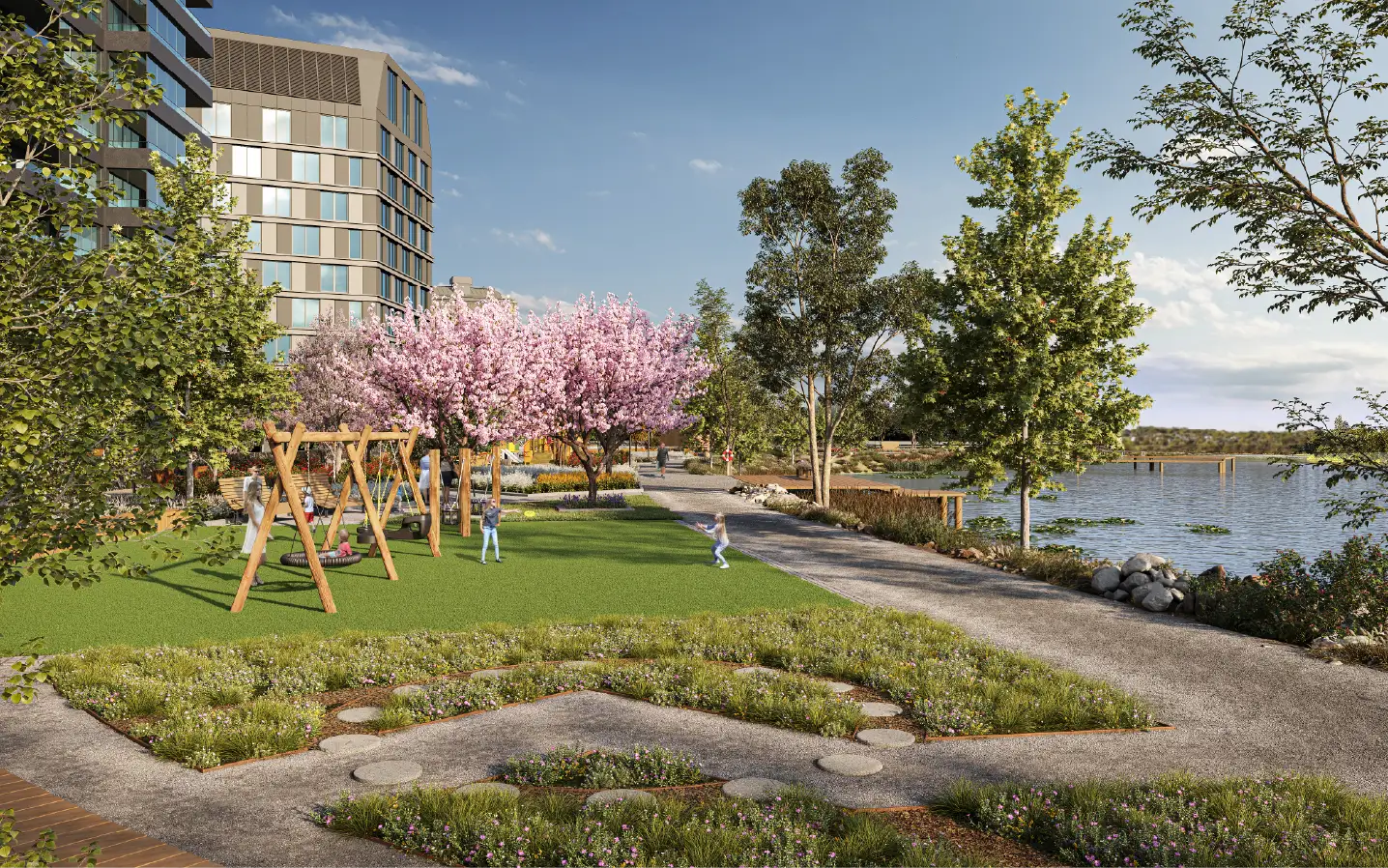 Under hösten sker det som på byggspråk kallas "finplanering". Det innebär att grönskan flyttar in i Skeppsbroparken.